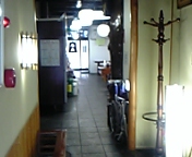 裏口からはいると長い通路。