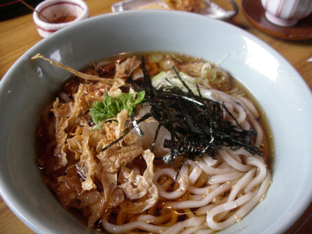 太くてもちもちつるつるした食感の豆腐をねりこんだ豆腐うどんです。