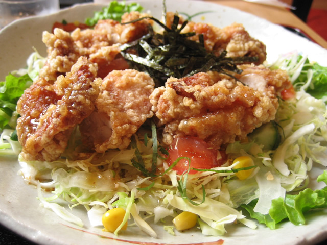 ごましょうゆドレッシングでさっぱり仕上げた鳥唐サラダです。