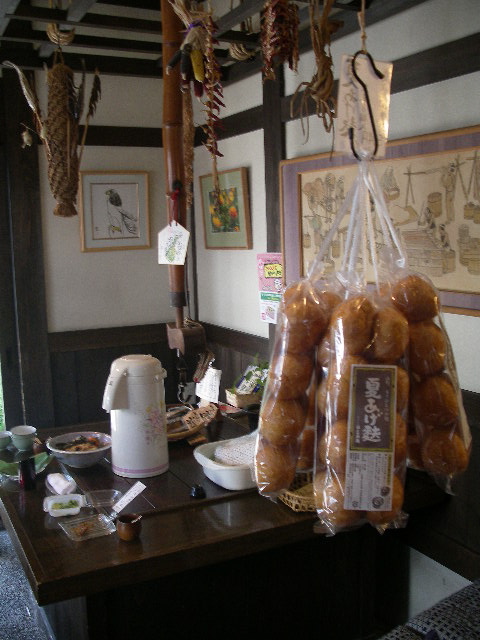 文四郎麩の和風モダンな店内です。あげ麩がつるしてあります。