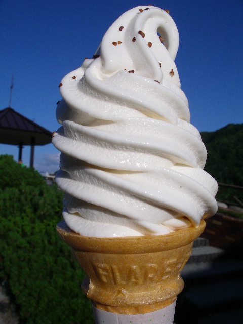 こちらはソバの実のトッピング蕎麦ソフトクリームです!ソバの風味が楽しめます。