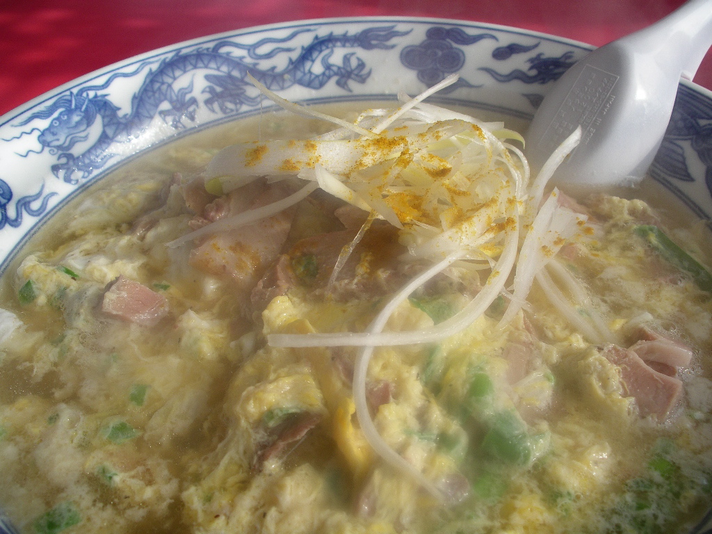 ぶつ切りのやわらか焼豚がボリュームたっぷり。カレーパウダーが効いてます! 拉麺食道(らーめんしょくどう)