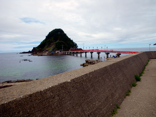 赤い橋を渡った170mのところに由良海洋釣堀(4月〜10月)があります。 島の頂上には白山神社があり、 毎年4月15日には白山神社例祭が行われます。 島の漁港からは観光遊覧船の グラスボート陽星丸(7月〜8月)が発着します。 山形県鶴岡市由良2丁目
