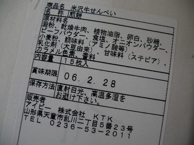 実は天童乱川の株式会社アイビーさんのおせんべいです。 アイビー株式会社 山形県天童市乱川2-5-23 TEL 0236-53-2011