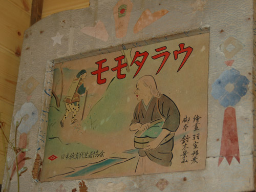 軍国主義下の教育の象徴でもある「モモタラウ」の紙芝居も残っていました。