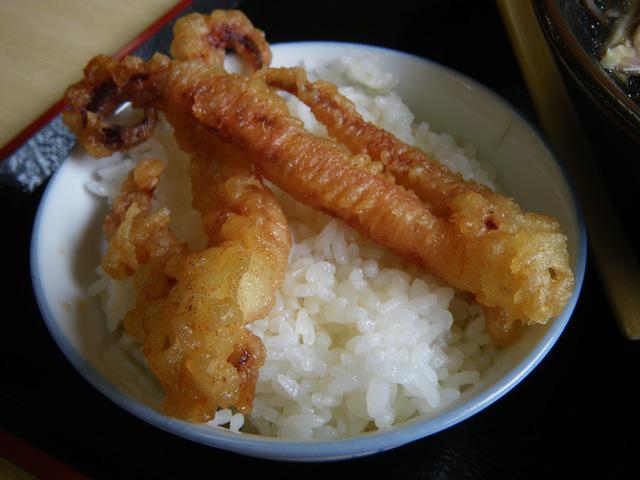 付け合わせも出来る下足天丼(げそ天丼)
