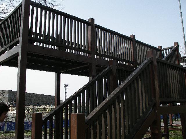 山形城趾本丸一文字門石垣復元工事の見物台です。