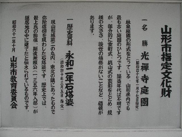 光禅寺庭園と永和二年石塔婆は、山形市の指定文化財に指定されています。