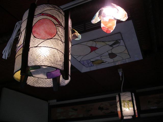 和紙のステンドグラス?のような飾り付けが随所に・・・