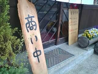お店の入口です。木造りの看板は味があります。