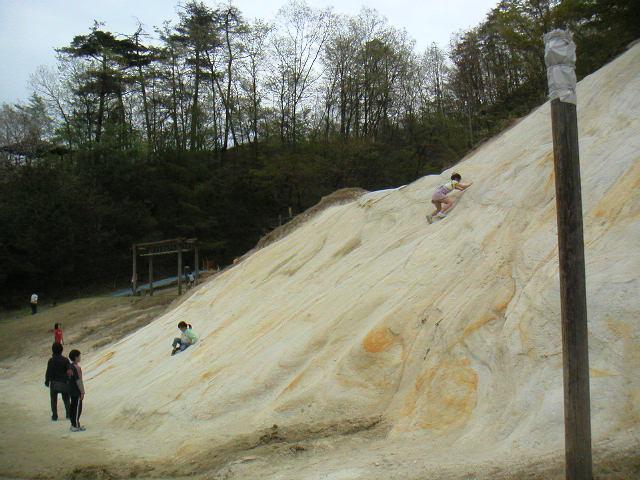 子どもたちは山をよじのぼって楽しみます。