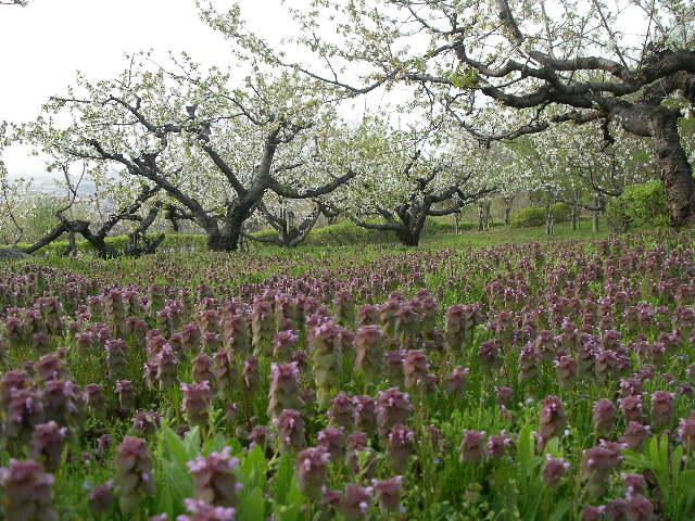 広い園内には自然の木や野花がいっぱいです。