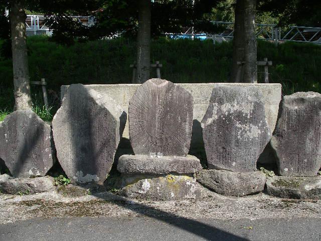 瀧山詣のを物語る「南無阿弥陀佛」の碑を中心に春夏」「秋冬」「水鏡」の三面の歌碑が並び建っています。