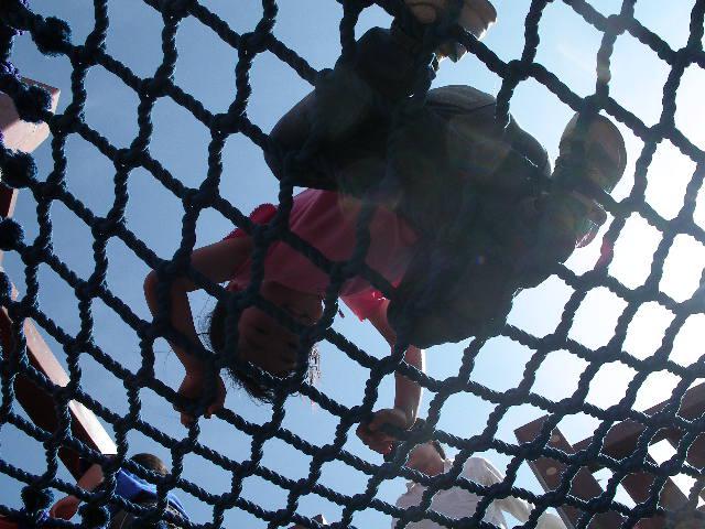 子どもたちは大はしゃぎ。スパイダーマンのようです。