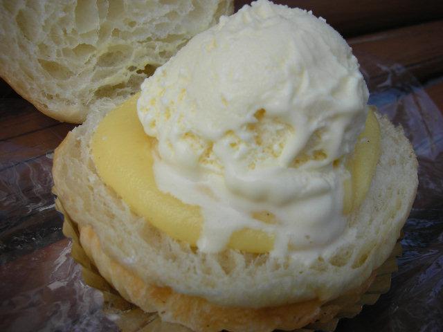 中にはカスタードクリームとバニラアイスが挟んであります。