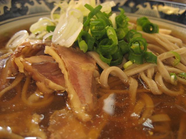 冷たい肉そばのアップです。あっさりスープが特徴的です。