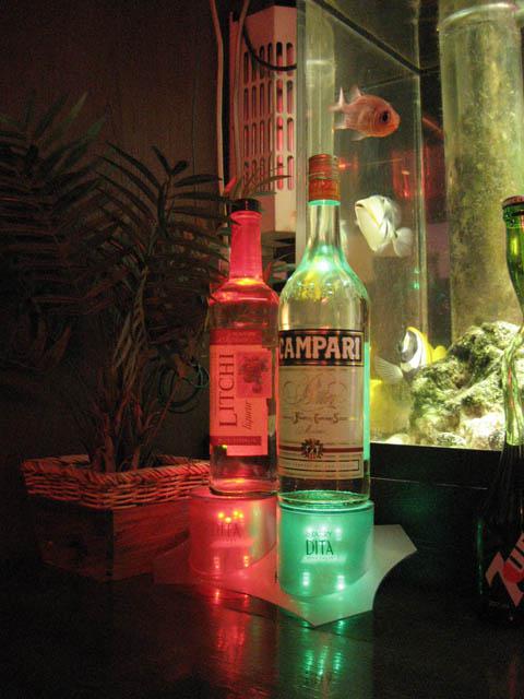 カウンター席にある、リキュール類が、おしゃれな雰囲気を演出。