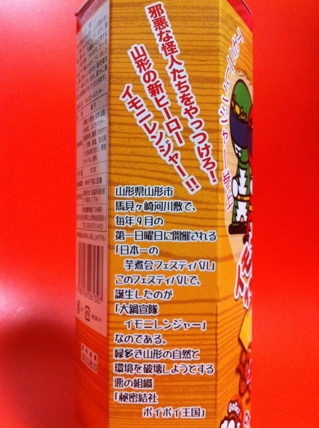 「芋煮」の食材「山形里芋」の化身。 やさしい心を持っており敵に情けをかけてしまう時もあるが、正義という名の芯をしっかり持っている。「スリング」の使い手で、鮮やかな身のこなしで敵を翻弄する。