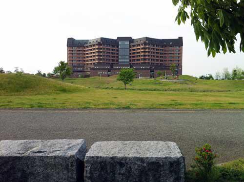 山形県立中央病院(やまがたけんりつちゅうおうびょういん)がそびえます。