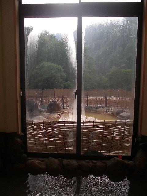 内風呂の窓から間欠泉が見えます。この時間は吹き出していませんでした。