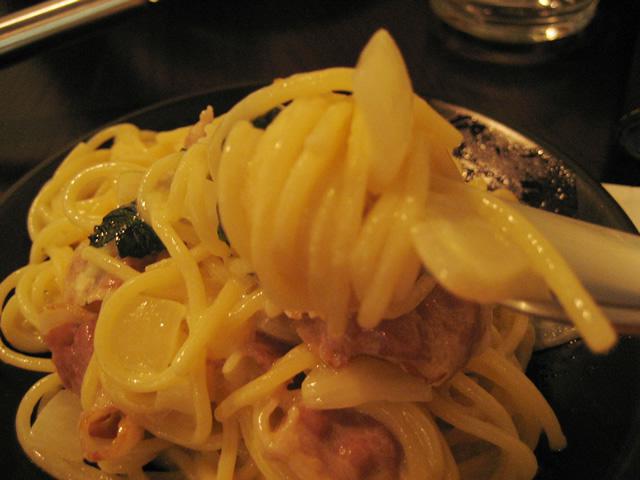 ほど良いゆで加減の食べやすいスパゲッティー。