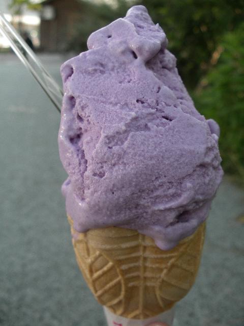 こちらは「紫いもジェラード」です。他にもマロンや「はえぬき」の米粒が入ったお米ジェラードなど楽しめます。休日は行列ができますよ!
