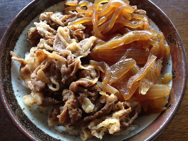 冷凍してある《牛丼の素》を温め、ご飯にのせるだけ・・・