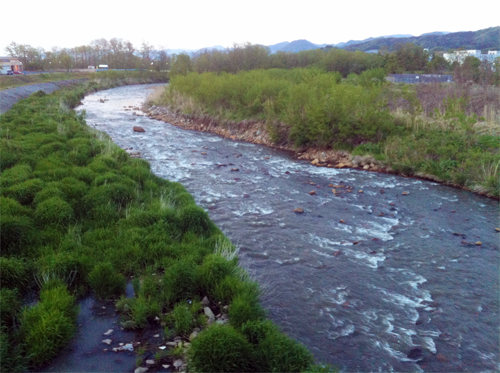 福田橋から北方面(山形市街地方面)を望む須川(すかわ)です。