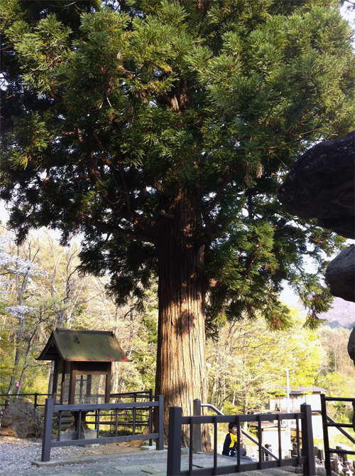 ▼石灯籠のそばにそびえる大杉