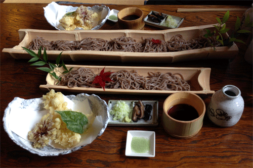 ▼大きい竹筒は板そば、小さい竹筒は盛りそば・・