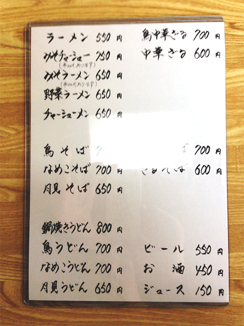 ▼メニュー(おしながき)です。
