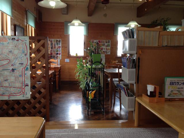 ▼店内はログハウス風の雰囲気