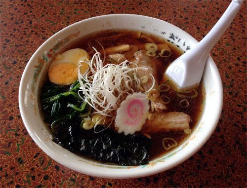 色が濃いアメ色ですがあっさりな醤油スープ。