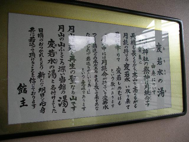 万葉集の月読命(ツクヨミヲトコ)を詠んだ歌の中に使われた変若水(おちみず/ヲチミヅ)という言葉通りの名湯の沸くお宿です。