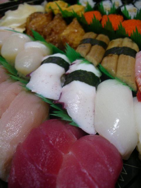 ネタは新鮮ででっかい!写真はテイクアウトのお寿司。自由に組み合わせられます。