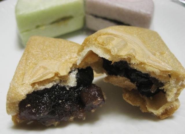 三色もなかは、胡麻あん、小倉あん、挽茶あんの三種類。