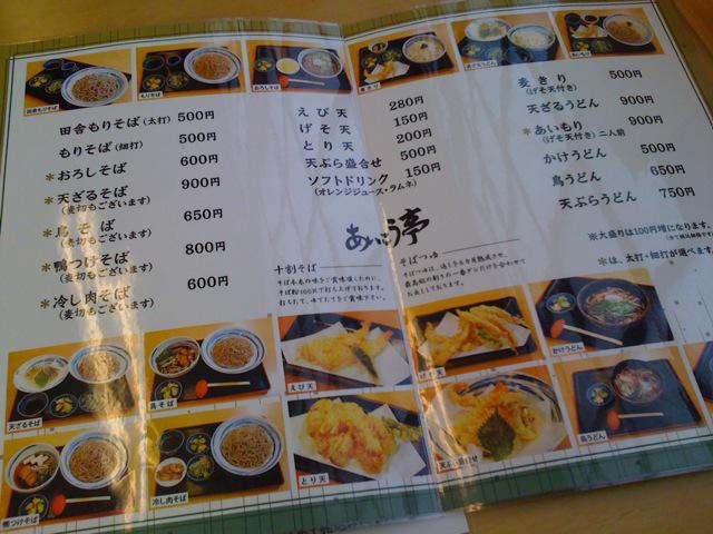 ▼あいこう亭のメニューです。