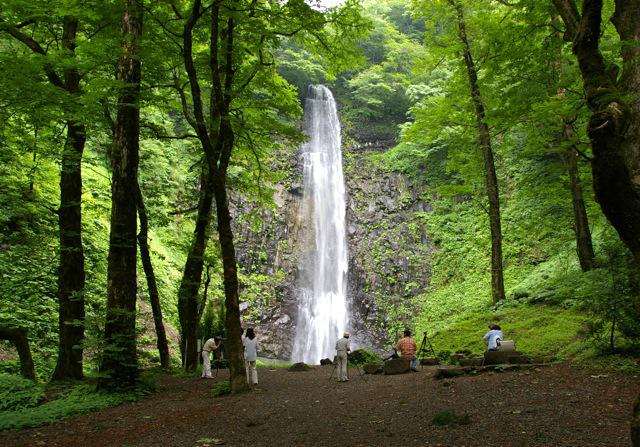 神社裏手に轟々と注ぐ玉簾(たますだれ)の滝です。
