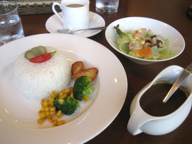 深町の踏み切り近く、cafe mail DEMODEの「カレーライスランチ」です。