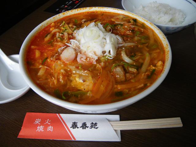 山形市南一番町にある「炭火焼肉 春香苑」のカルビうどんランチ。