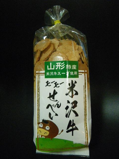 山形特産米沢牛スープをしようした「米沢牛モーモーせんべい」です。