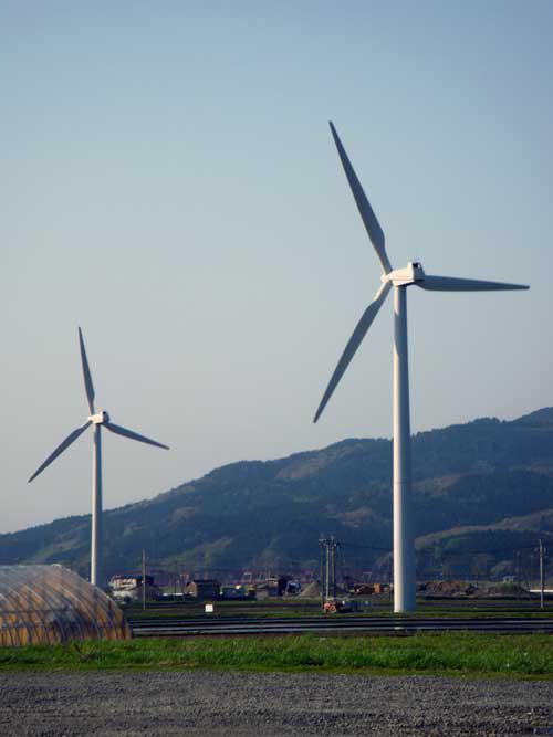 強風【清川だし】を活かした立川の風車(風力発電)です。