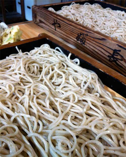通もうなるシャキッと風味豊かな中細麺。やぶ長の板そば。