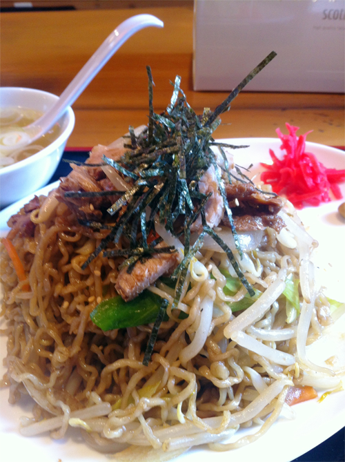 米沢ラーメン系のつるつるかめや作〜焼きそば。