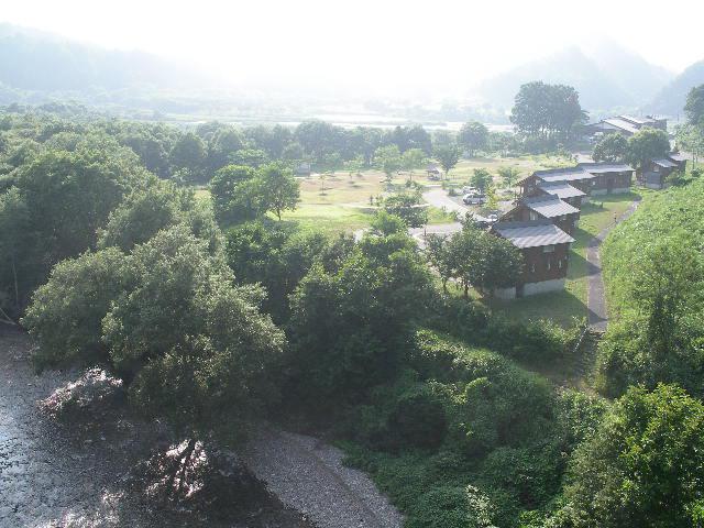 白川ダム湖岸公園の眺めです。コテージ村木湖里館やホテルフォレストいいでや白川ダム湖岸公園オートキャンプ場があります。