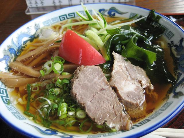 山形市いなり支店の《冷しラーメン》は、トマトやキュウリの色味鮮やかなあっさりめの冷しラーメンです。