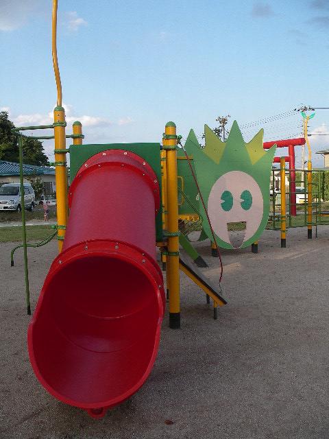 寒河江市市民浴場側の《最上川を望む公園》です。花咲かフェアのマスコットの遊具があります。
