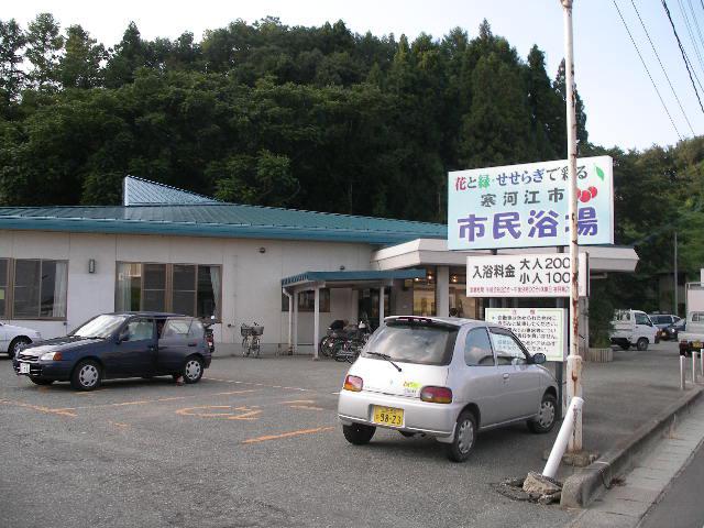 最上川のそばにある循環掛け流しの《新寒河江温泉》寒河江市市民浴場です。