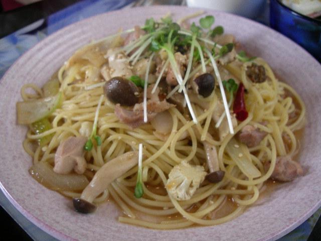 山形市の老舗の洋食屋さん《シナモン》のチキンときのこたっぷり和風パスタランチです。