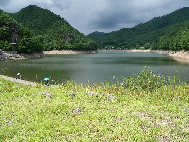 東北地方でも有数のかんがい用人造湖・・蛭沢湖(びるさわこ)です。